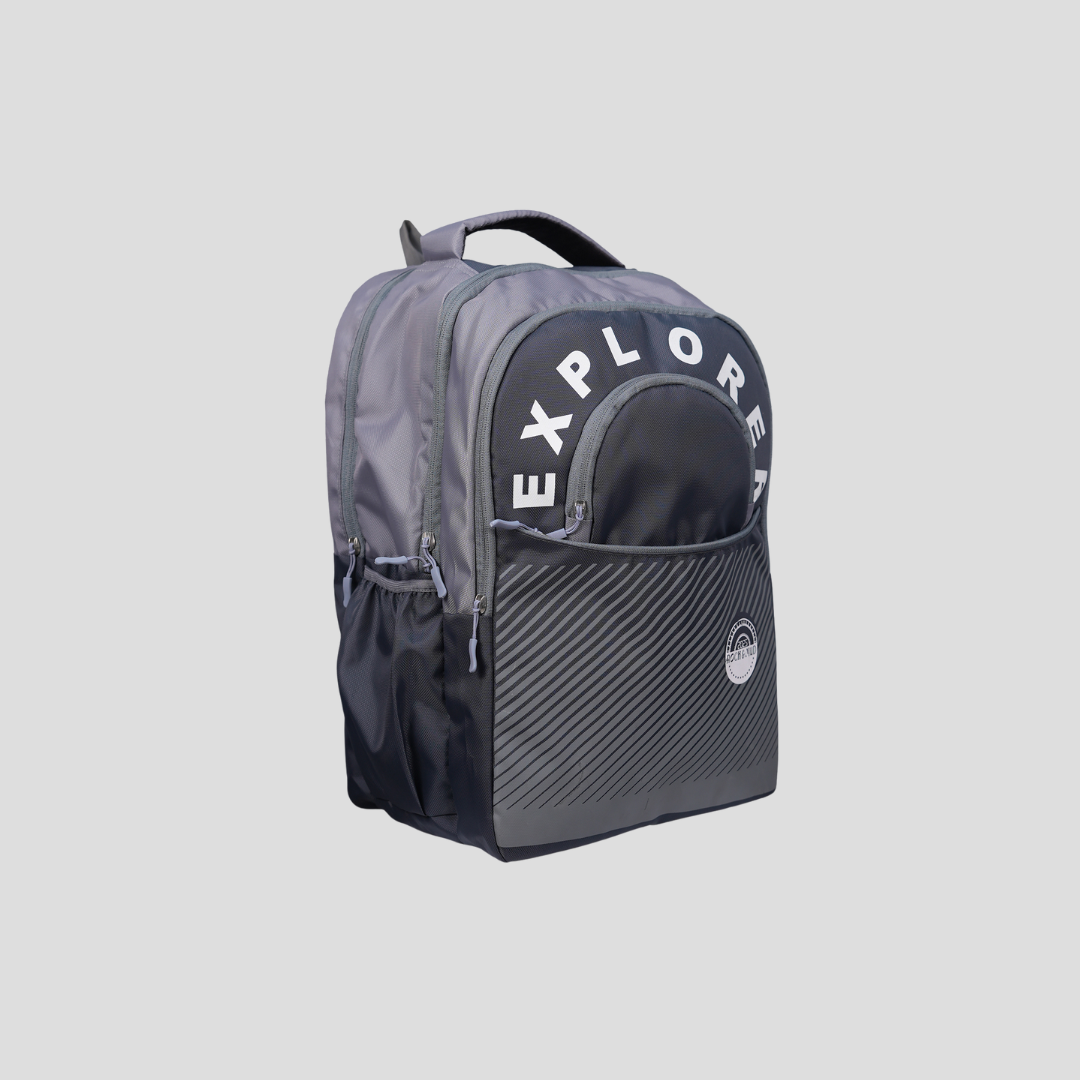 The Charcoal Explorer Grid School Backpack is designed for students who value both style and functionality in their everyday essentials. Its sleek charcoal-grey tone paired with bold white lettering gives it a confident, modern edge. Built from sturdy, water-resistant fabric, it ensures long-lasting protection for books, gadgets, and personal items. The roomy main compartment easily fits textbooks and lunch boxes, while the curved front pocket offers additional space for stationery or quick-access items. Mesh side pockets are perfect for bottles or snacks. Padded shoulder straps and a cushioned back panel provide superior comfort during travel or daily school commutes. The durable handle on top allows for quick and easy carrying. Smooth-running zippers and reinforced stitching guarantee reliability through busy school routines. Ideal for teens who want a sharp, organized, and travel-ready backpack that blends smart looks with practical performance.